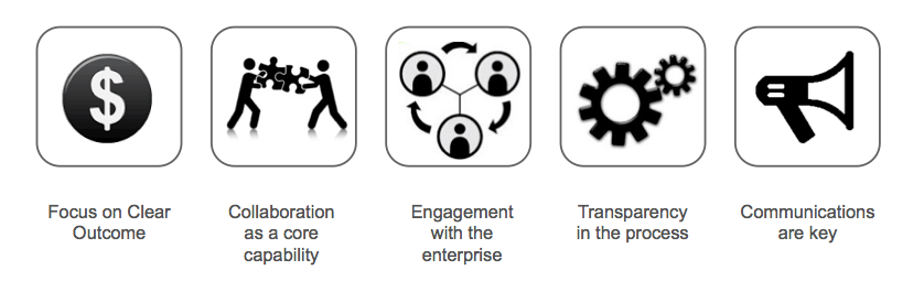 - Engagement with the enterprise – understand the way the organisation works and build across groups and silos. At the edges of those groups is where you will find the most treasure.